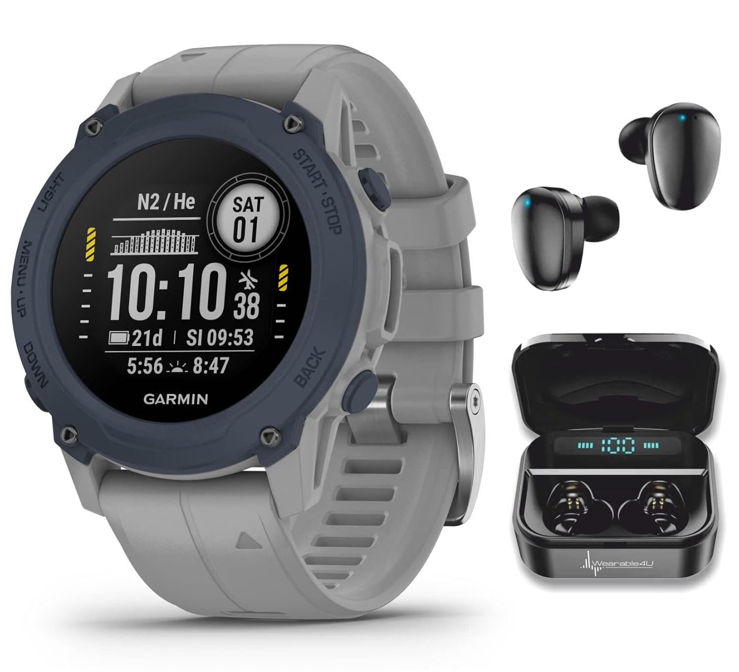 Wearable4U Garmin Descent G1 Rugged Dive Computer Bundle (Powder Gray) + Black Earbuds
