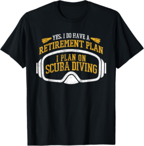 Retirement is a time for individuals to enjoy the fruits of their labor and immerse themselves in the activities they truly love. A “Funny Retired Scuba Diver” T-shirt captures this sentiment perfectly. The design features an amusing saying: Yes, I have a retirement plan; I plan on scuba diving. This witty statement not only makes a great conversation starter but also serves as a badge of honor for those who’ve dedicated their lives to exploring the wonders of the ocean.