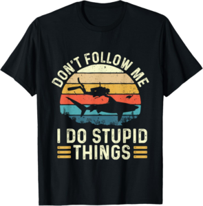 The phrase Don’t Follow Me I Do Stupid Things evokes the carefree and adventurous nature of diving. Each dive comes with its own set of unexpected occurrences, and this shirt humorously captures that essence. It’s not just about the thrill; it’s also about celebrating the unconventional moments we often find ourselves in while exploring the underwater world.